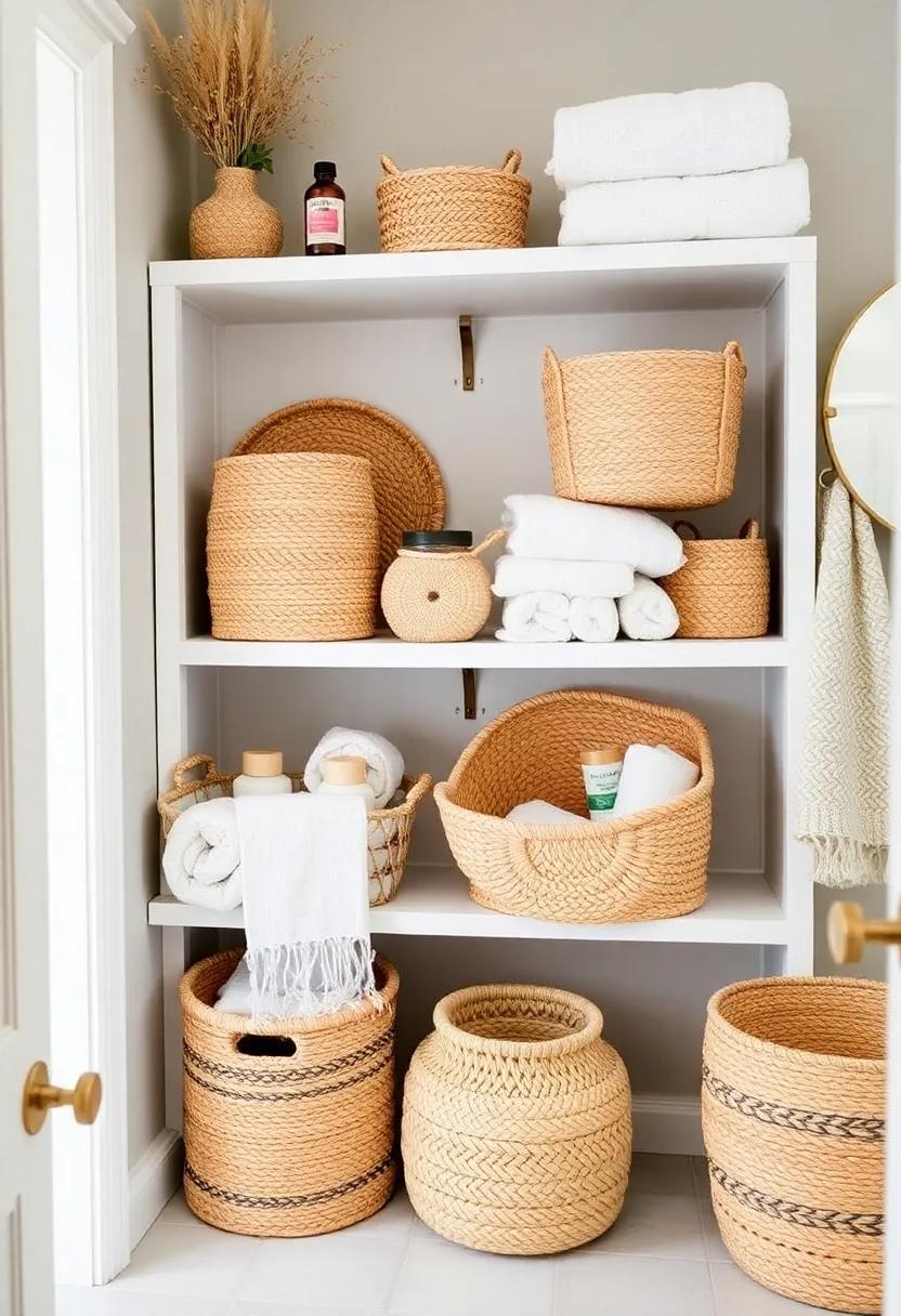 Incorporating these stylish storage options is as easy as placing them on open shelving or under a bathroom vanity. Arranging baskets with different weaves and colors can also introduce visual interest, making your space feel more dynamic. Consider accessorizing with dried flowers or essential oil bottles atop the baskets for added flair. For those seeking additional inspiration, you can explore more ideas on how to enhance your bohemian style at housebeautiful.com, where you can discover décor tips to make your retreat even more inviting.