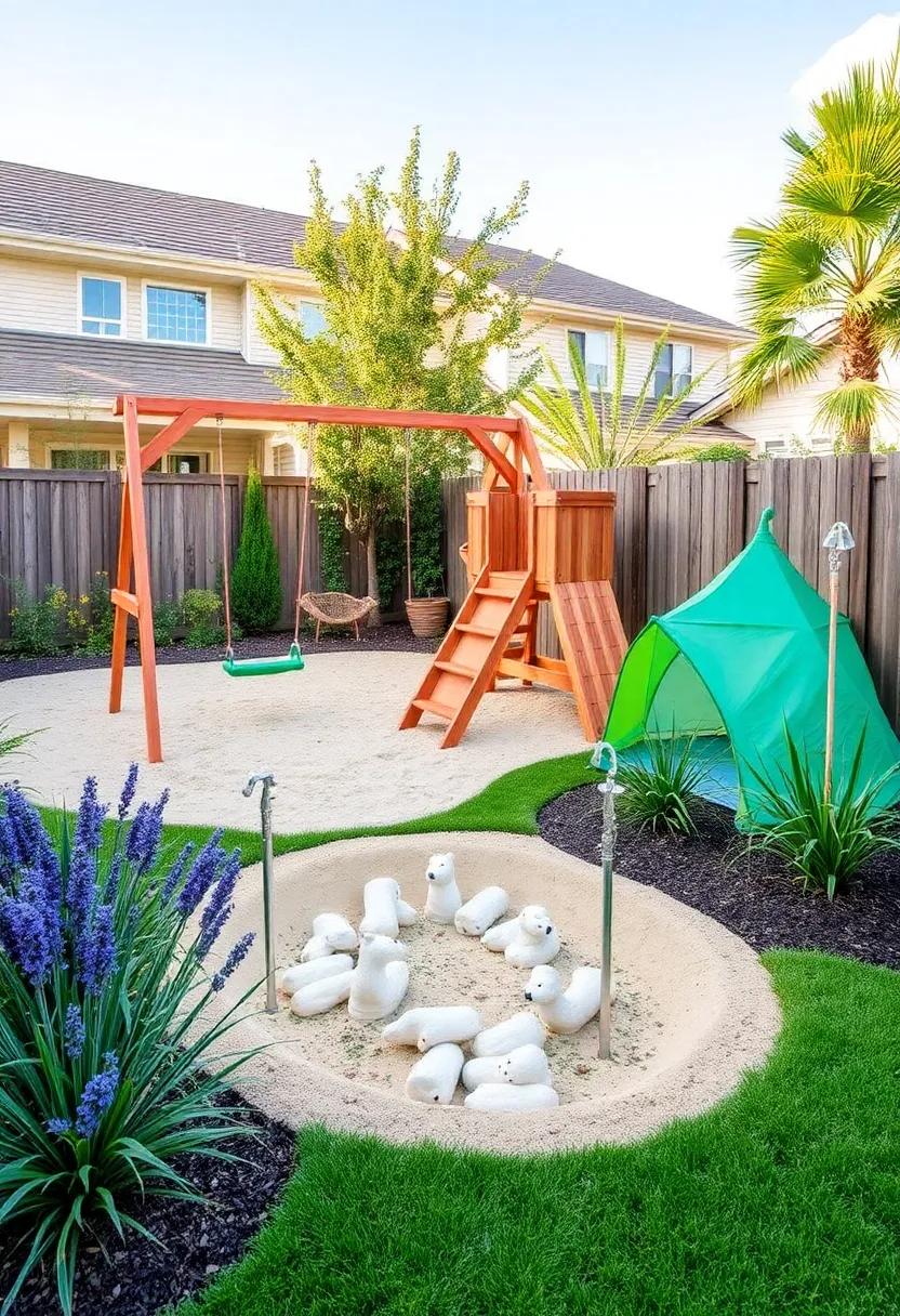 14) Design a Kids’ Play Area: Incorporate swings, a sandbox, or climbing structures to create a fun, safe space for children to play