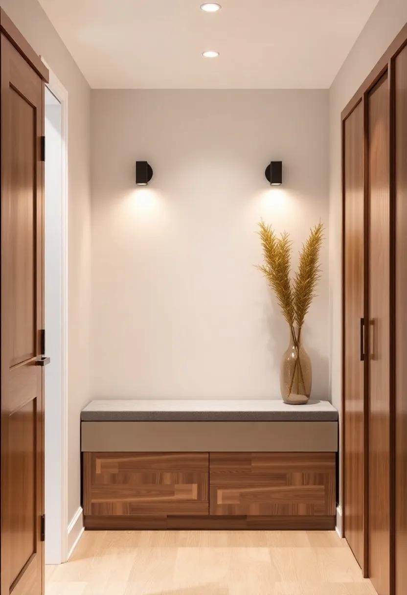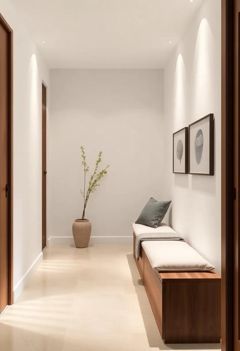 “Creative Lighting: Highlight a sliding storage bench in the hallway with stylish sconces above, turning it into a focal point that combines practicality and ambiance.”