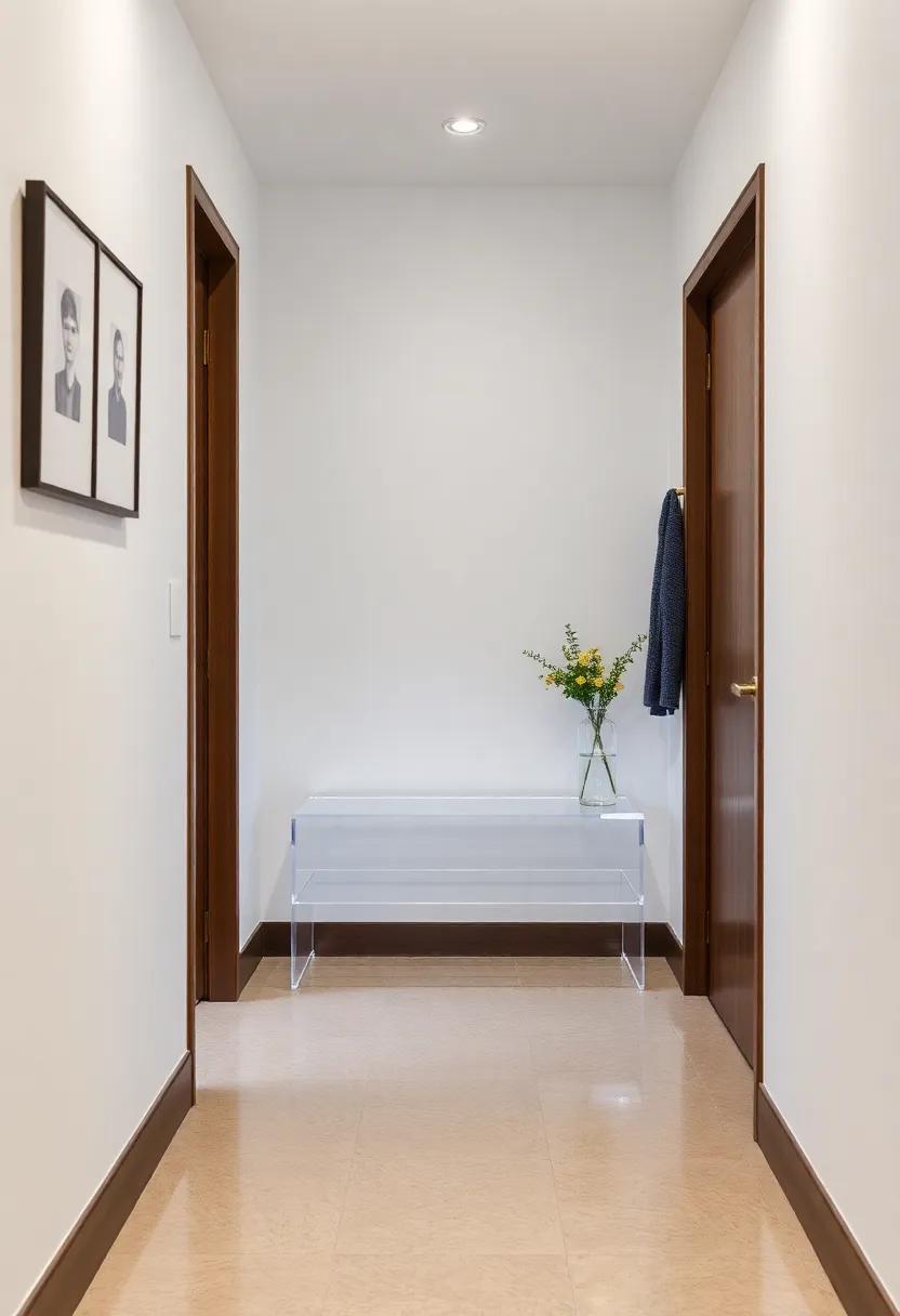 Transform your narrow hallway into a functional and aesthetically pleasing space with a transparent acrylic sliding storage bench. This innovative piece of furniture not only serves as a sleek seating option but also offers clever storage solutions, allowing you to tuck away shoes, bags, or other essentials without cluttering the area. The translucent material creates a sense of openness, making even the tightest corridors feel welcoming and spacious. Choose a bench with a minimalist design to enhance the light and airy atmosphere while still providing practical benefits that keep your hallway organized.