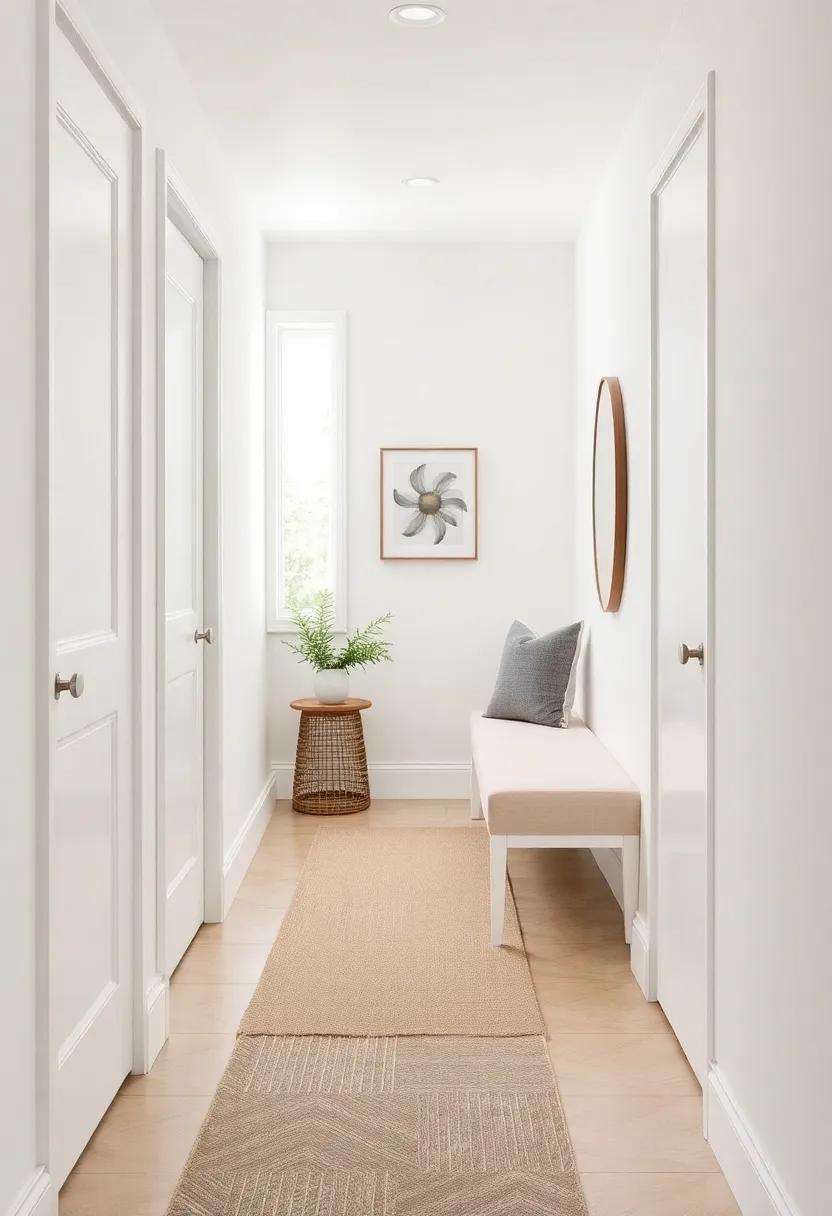 In a world where space is a premium, a white sliding storage bench positioned against soft gray walls transforms an ordinary narrow hallway into a striking focal point. This stylish piece of furniture serves as a canvas for personal expression while enhancing functionality. Its sleek design ensures it does not overpower the space, allowing the hallway to feel open and inviting. With a smooth finish and clean lines,the bench effortlessly integrates with various décor styles,making it a versatile choice for anyone aiming for a minimalist aesthetic.