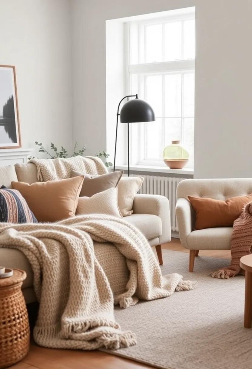 Layered Textures: Combine different fabrics like wool, cotton, and linen to add warmth and depth to the space