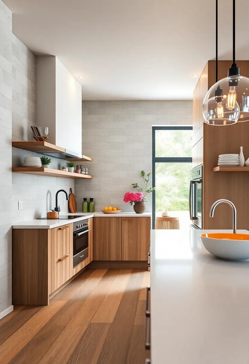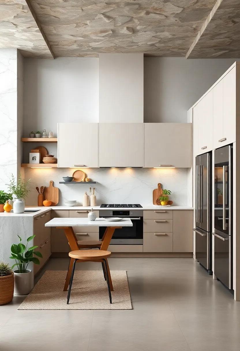 Embrace the essence of sleek minimalism by incorporating clean lines and a neutral color palette that brings a sense of harmony to your kitchen. Imagine a space where the chaos of clutter is replaced by understated elegance. Use flat-panel cabinetry in shades of white or soft gray, paired with sleek stainless steel appliances that seamlessly blend into the background. A clear quartz or concrete countertop can enhance this ambiance, creating a streamlined look that underscores functionality.Think about maximizing your space with hidden storage solutions—think pull-out drawers and concealed shelving that maintain the uncluttered aesthetic while ensuring everything has its place.