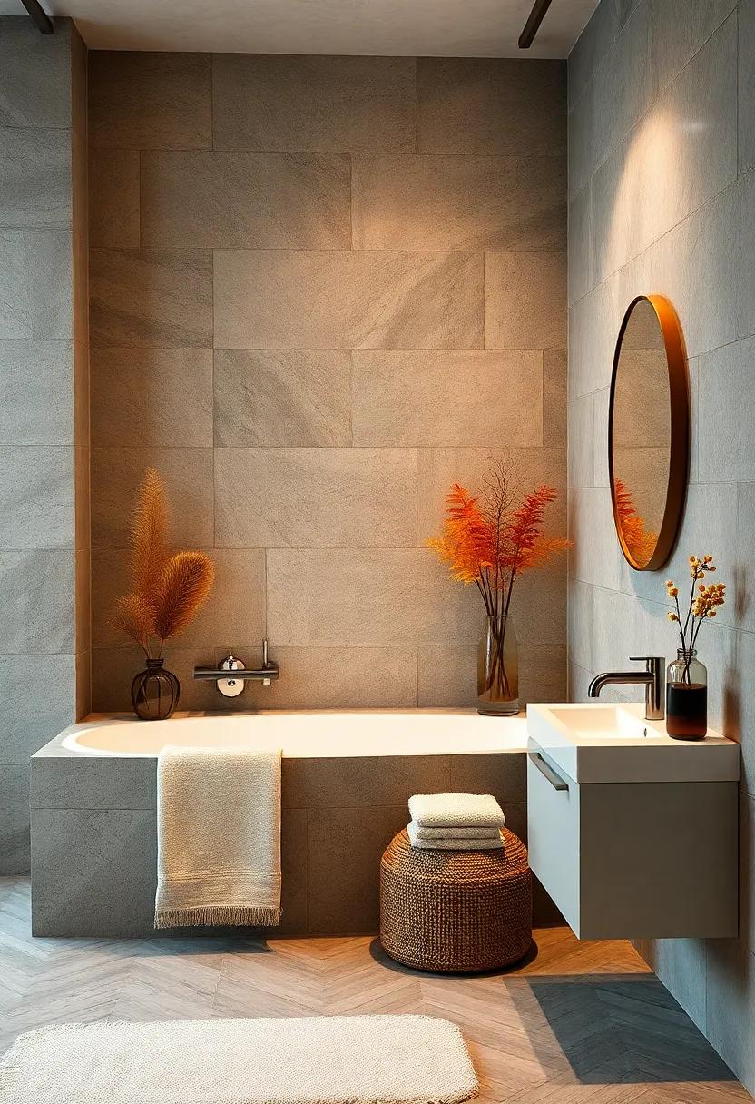 Decorative Trays: use trays to organize bath essentials and add visual interest, selecting materials that reflect the warmth of the fall season