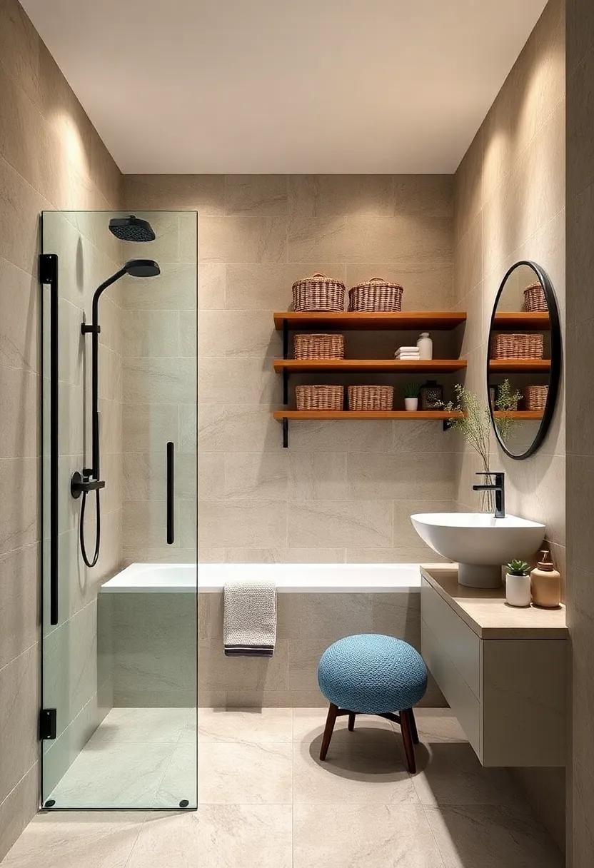 Shower Bench: Incorporate a built-in or collapsible shower bench for convenience and a spa-like feel without taking up significant floor space