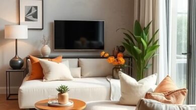Alternatively, consider using essential oil diffusers to cultivate an aromatic haven. These devices disperse essential oils that can be customized according to your preferences, ensuring a unique scent experience. Choose oils like eucalyptus for a refreshing lift or chamomile for a calming effect. With a range of designs available, from sleek ceramic to chic glass, a diffuser can serve as a statement piece in your decor while subtly enriching your home. Incorporate an aromatic touch to your living space by selecting a few elegant scents that reflect your personality; it’s a simple yet impactful way to envelop your small living room in style.