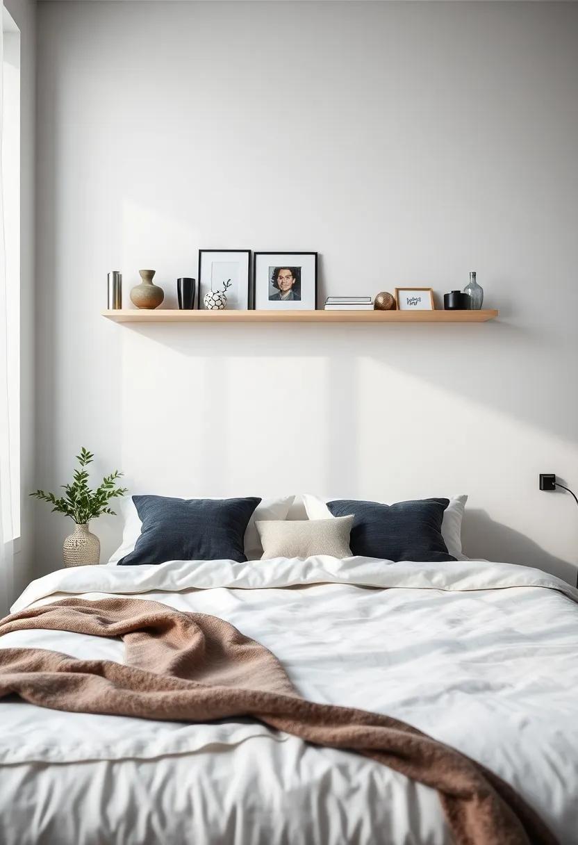Transforming your bedroom into a modern minimalist sanctuary can be effortlessly achieved by curating a unique collection of objects that tell your story. Choose a few meaningful mementos that resonate with your personal journey. Consider displaying items such as: