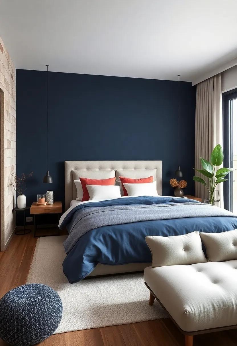 To maximize the impact of midnight navy in your bedroom, consider the following design elements: