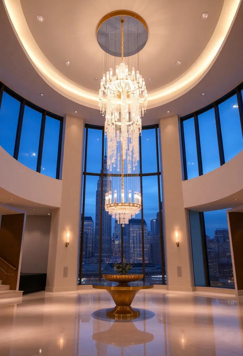 Create a focal point in your foyer with the “Towering Dreams,” a grand chandelier designed to mimic the skyline, evoking the spirit of urban sophistication