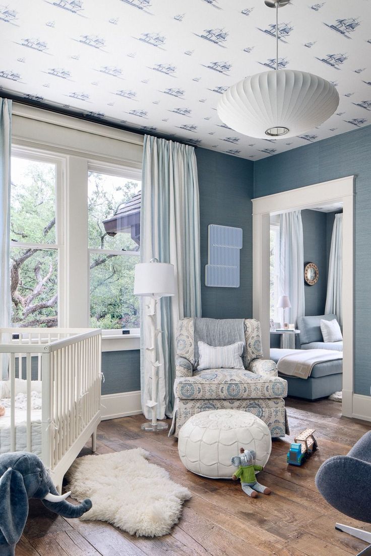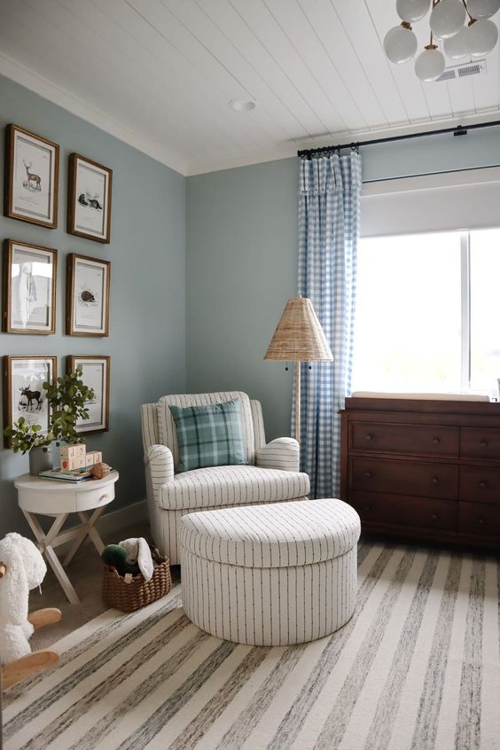 Consider incorporating plush rugs or carpeting in calming shades of blue or gray to add warmth and comfort to the nursery. Soft blankets and throw pillows can also make the space feel more inviting and can be easily switched out to update the room as your baby grows. Look for fabrics like organic cotton or bamboo, which are hypoallergenic and safe for your baby to snuggle up with.