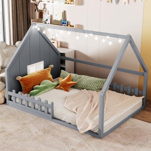 This bed is a delightful blend of fun and safety, expertly crafted from solid pine wood and MDF to ensure durability. The charming fence and window design not only enhances the aesthetic appeal but also makes it a cozy retreat for kids. With guardrails included, parents can have peace of mind knowing their little ones are secure while sleeping or playing. The inherent Montessori principle encourages a sense of independence, allowing children to easily enter and exit as they please, fostering their imagination and creativity. Additionally, the bed includes wrap-around LED lights, adding a magical touch to bedtime and stimulating creativity in a playful ambiance.