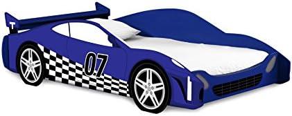 Legaré Furniture Children’s Race Car Standard Bed Frame for Kids, Blue and White, Twin Size