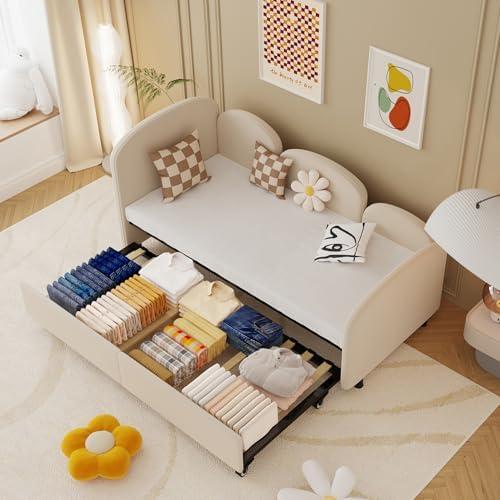 Charming Twin Size Upholstered Bed with Rabbit Design