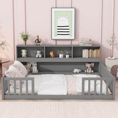 This platform bed brings a modern touch with its stylish design that merges practicality with aesthetics. The built-in bookcase headboard offers six shelves and a convenient charging station, making it perfect for kids, teens, and adults alike. With two storage drawers available underneath, it provides ample space for keeping your room organized and clutter-free. The construction is solid, made from pine wood and MDF, ensuring long-term durability. Notably, the frame supports a weight capacity of up to 350 lbs, making it a robust choice for everyday use.