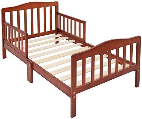 This solid wood construction is crafted from premium pine and plywood, resulting in a durable and sturdy bed perfect for any child’s room. With dimensions of 53″ x 30″ x 24.5″ and weighing only 20.94 lbs, it is designed for easy handling and stability. The low-to-the-ground design not only provides convenience for children to climb in and out of bed, but also enhances safety with two guardrails. Available in a rich espresso finish, this piece seamlessly complements existing décor while offering practical functionality. It is compatible with most standard full-size mattresses, eliminating the need for a box spring, and making it an economical choice for growing kids.