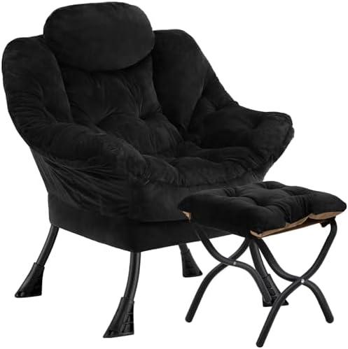 Experience the inviting comfort and luxurious aesthetic that this modern tufted armchair offers, complete with a supportive ottoman. Its ergonomic design features a high curved back that provides exceptional support for your body, particularly in your shoulders and lower back. With a tilted footrest that promotes healthier sitting angles, this chair is perfect for long reading sessions or binge-watching your favorite shows. The solid metal frame guarantees stability and a weight capacity of 250 lbs, while non-slip pads protect your floors from scratches, ensuring you can relax without worries.