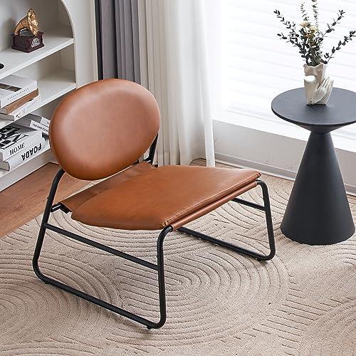 This accent chair combines modern aesthetics with functionality, making it an ideal addition to your living area, bedroom, or office. Upholstered in high-quality synthetic leather, it features a vintage design that is both eye-catching and easy to maintain—simply wipe it off with a dry cloth. With a solid metal frame that provides support for up to 350 lbs, the chair is sturdy yet lightweight, making it easy to reposition according to your needs. The ergonomically designed backrest and generously padded seat ensure unmatched comfort, making it perfect for extended reading sessions or relaxed lounging.
