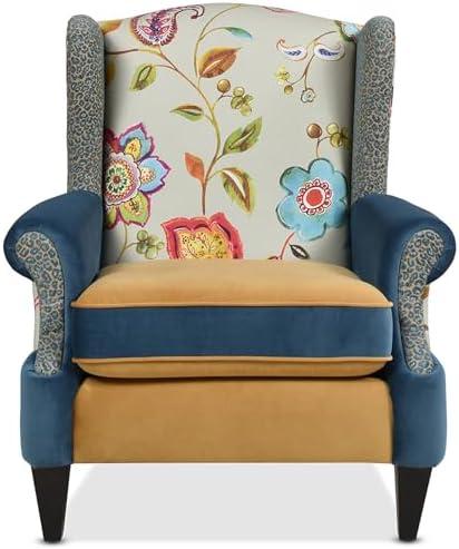 Chic Floral Patchwork Wingback Accent Arm Chair