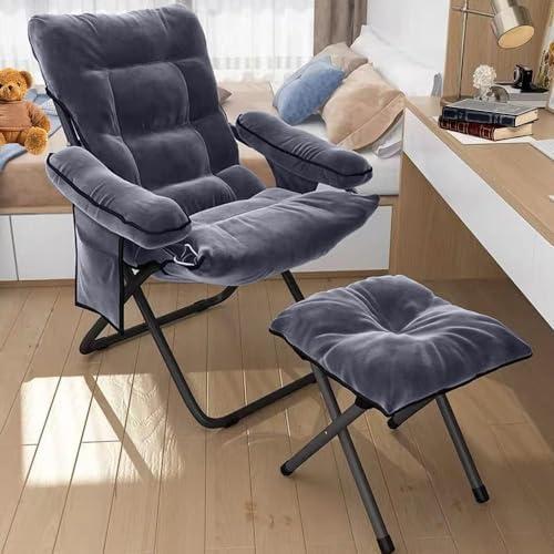 Comfortable Modern Folding Lounge Chair with Ottoman and Side Pocket