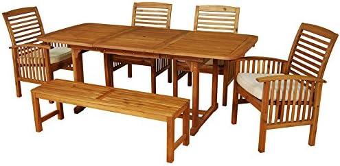 Walker Edison Maui Modern 6 Piece Solid Acacia Wood Slatted Outdoor Dining Set, Set of 6, Brown