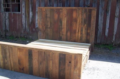 Designed with reclaimed rustic barn wood, this bed frame offers a warm, inviting look that pairs well with various bedroom styles. It boasts a quiet design, ensuring that movement during the night does not disturb sleep. The heavy-duty metal slats provide exceptional stability, supporting all types of mattresses without the need for a box spring. Additionally, the wooden slats prevent any sagging or shifting, enhancing mattress longevity and comfort.