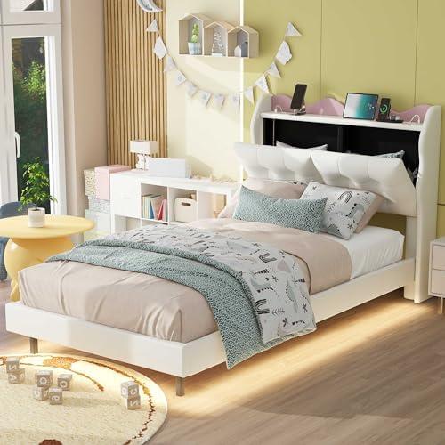 Transform any bedroom with this stunning bed frame that features a charming crown-shaped headboard and enchanting LED lighting. The plush upholstery in soft pink and white creates a luxurious atmosphere, ideal for bringing a touch of whimsy. Designed for both aesthetics and practicality, this frame is easy to assemble and supports a full-size mattress securely. With a weight capacity of up to 500 lbs, it offers durability through its solid MDF, plywood, and PU construction, paired with sturdy metal feet. The built-in LED lights not only enhance the room’s charm but can be controlled via remote, allowing for customization according to mood and preference.