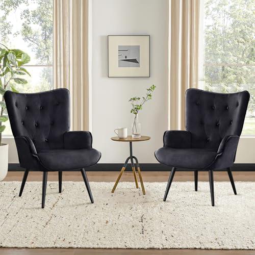 These stylish accent chairs are a perfect blend of comfort and elegance. Featuring a premium soft velvet finish, the charming button-tufted design adds a touch of vintage flair to any space. Equipped with a sturdy structure that includes a solid wood and metal frame, these chairs are built to support up to 285 lbs, ensuring durability while providing a cozy seating experience. The high-density elastic sponge cushioning and ergonomically designed high backrest make for a relaxing support, ideal for enjoying a good book or watching television. Their versatile design allows them to seamlessly fit into various environments, whether it’s your living room, bedroom, or office.