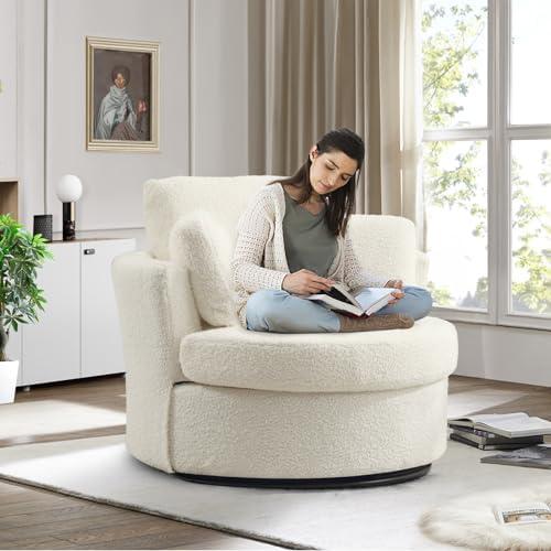 CHITA Swivel Barrel Chair, Modern Comfy Boucle Accent Chair for Living Room, Cream