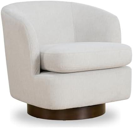 This versatile swivel chair is designed to enhance your living space, providing a perfect spot to relax with a book or prepare for the day. Its modern barrel silhouette and solid hue makes it easy to integrate into any décor, whether in the living room, bedroom, or office. Constructed with a robust solid wood frame, this accent chair offers impressive durability, supporting up to 300 lbs comfortably. The 360° swivel base adds convenience, allowing you to turn and engage with your surroundings effortlessly.