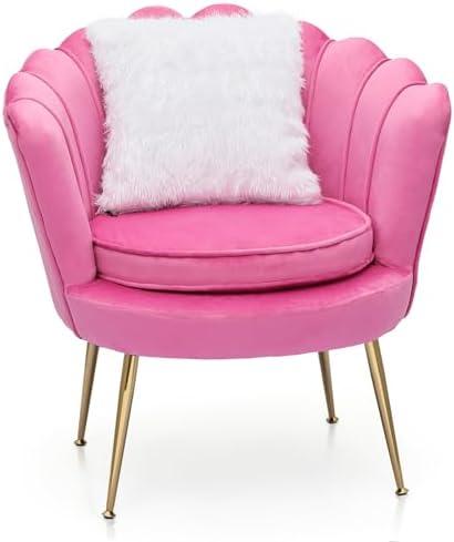 The elegant design of this accent chair combines retro aesthetics with modern comfort, featuring a plush velvet fabric that is soft to the touch. The high-quality sponge-filled cushion ensures a cozy seating experience, making it an excellent choice for curling up with a book or relaxing after a long day. Its scalloped back adds a distinctive charm, while the golden legs provide a touch of sophistication that complements various décor styles. With a sturdy frame capable of supporting up to 250 lbs, it’s both stylish and durable, making it suitable for living rooms, bedrooms, or reading nooks.