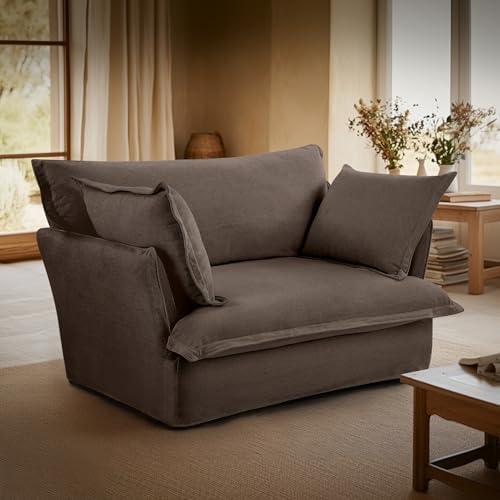 This oversized accent chair exudes luxury and comfort, crafted from a silky linen blend that provides a soft, cloud-like seating experience. Generously filled with high-density foam, it promises to maintain its comfort even after extended use. The robust solid wood frame ensures exceptional load-bearing capacity, accommodating up to 500 lbs while enhancing the overall durability of the piece. Its generous dimensions of 36.8″ (D) x 50.4″ (W) x 33.9″ (H) make it not just a chair but a cozy nook for lounging, reading, or enjoying movie nights. Two included hold pillows add an extra touch of comfort and elegance, allowing for a personalized seating experience.
