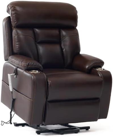 Crafted from high-quality PU leather, this chair not only adds a touch of elegance to any living space but is also easy to clean and maintain. Its overstuffed pillows provide exceptional comfort and support, enhancing the seating experience. However, there are a few considerations to keep in mind, such as its bulkiness which may make it less suitable for smaller rooms and the reliance on electricity for the lift mechanism. the chair combines strong support with modern design, making it a valuable addition to any home.