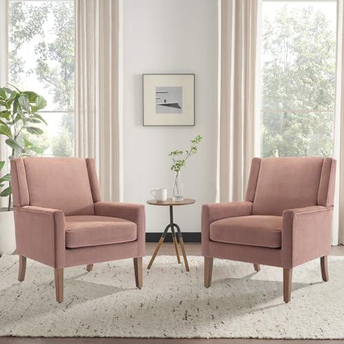 This set of two upholstered accent chairs adds a touch of elegance to any room with their modern design and soft pink fabric. The chairs feature thick cushioned backrests and seats made from high-density foam, providing exceptional comfort whether you’re settling in with a good book or watching your favorite show. Crafted with a sturdy wood frame and rubber wood legs, each chair supports a maximum weight capacity of 300 lbs. Additionally, non-slip pads on the feet help prevent scratches on your floors while ensuring stability during use. They come with easy assembly instructions and all necessary tools, making setup a breeze.