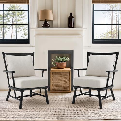 While these chairs have numerous advantages, there are also a few considerations. The sturdy solid wood frame and tighter connections enhance stability and longevity, preventing wobbling on uneven surfaces due to anti-slip rubber footpads. However, assembly requires about 20 minutes, which may pose a slight challenge for some. they accomplish the sophisticated look of a farmhouse aesthetic while providing comfort and functionality in various spaces, like living rooms or bedrooms.