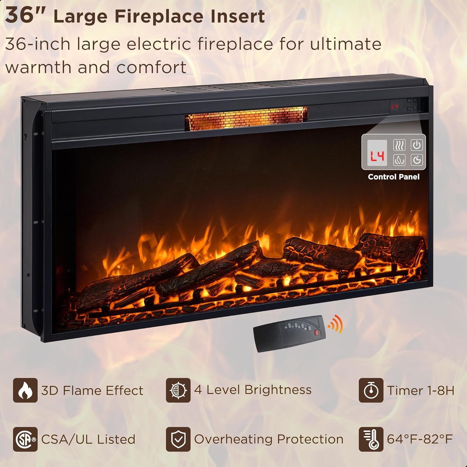 | Fireplace Insert Size | 36″ Electric Fireplace (5000 BTU) |