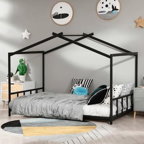 Toddler Floor Bed with Metal House-Shaped Frame for Kids