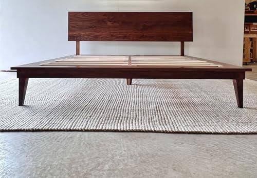 Solid Wood Bed Frame with Headboard – Available in King Size, Queen Size, Twin Platform Bed Wood Headboard Rustic Bedroom Furniture Suitable for Sleeping for All Types of People(Brown)
