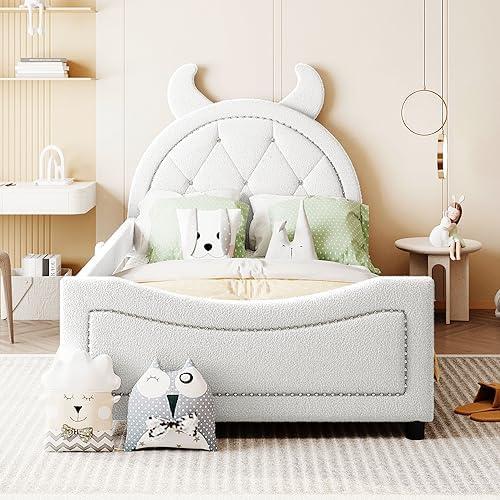 However, while this charming bed frame boasts several advantages, there are a few considerations. The assembly requires careful attention to the instructions for stability, and exceeding the recommended weight limit may compromise its integrity. The lively color upholstery, while appealing, may not suit every decor taste, making it a more niche option. this frame presents a unique and functional addition to a child’s room, blending fun with practicality.
