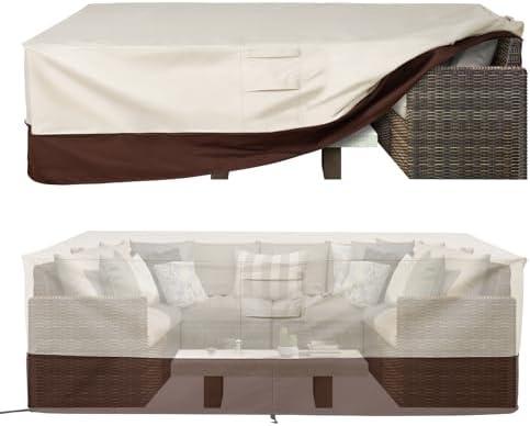 When it comes to protecting your outdoor seating, nothing beats a robust and stylish choice. This large rectangular cover is made from heavy-duty, weather-resistant polyester, designed to safeguard your furniture from a variety of environmental elements, including rain, snow, and harmful UV rays. Its waterproof and weatherproof features ensure that your couch set remains safe and dry, even in unpredictable weather. Additionally, the neutral tan fabric complements most outdoor settings, allowing your covered furniture to seamlessly blend into the environment while not in use. The elastic band around the edges provides a snug fit, helping to keep the cover secure against gusty winds.