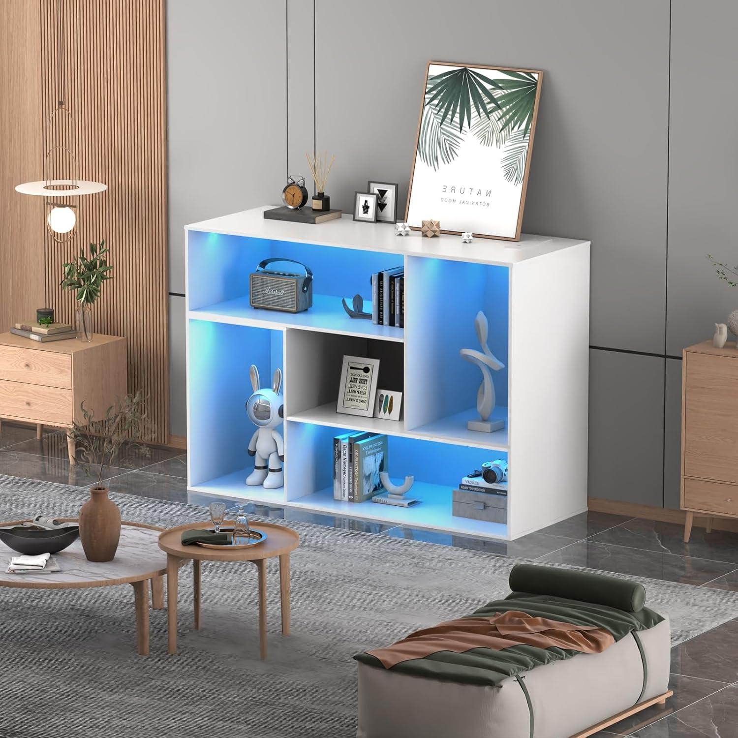 Living with the Deformable TV Stand with LED Lights, Living Room TV Stand with Power Outles & USB Ports, Game Console Entertainment Center with Storage Shelves and Media Layers for 70 Inches TVs (White) you notice, over time, how it slips into the room’s arrangement and frames the way you move through the space. In daily routines it becomes a quiet landing—remotes and a pair of headphones, the odd magazine—its surfaces picking up faint scuffs where hands and habits meet and the nearest seat tipping slightly closer for comfort as the room is used. You find it rests.
