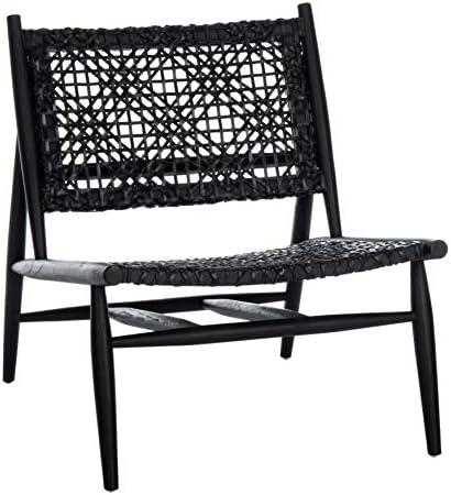 Safavieh Home Bandelier Black and Black Leather Weave Accent Chair