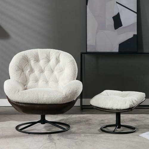 Mid-Century Modern Faux Fur Lounge Chair with Ottoman and 360° Swivel Base