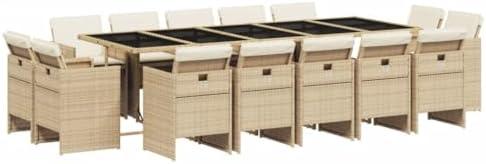 Designed for outdoor enjoyment, this comprehensive dining arrangement combines functionality and style. It features a spacious acacia wood table, accompanied by four armchairs and four ottomans, perfectly accommodating gatherings of up to eight. Each piece is crafted with high-quality PE wicker and a solid steel frame, providing both durability and weather resistance. The soft, thick cushions enhance comfort, while the removable covers make maintenance a breeze. An ingenious space-saving design allows the furniture to tuck neatly under the table when not in use, making it an ideal choice for patios, backyards, and gardens.