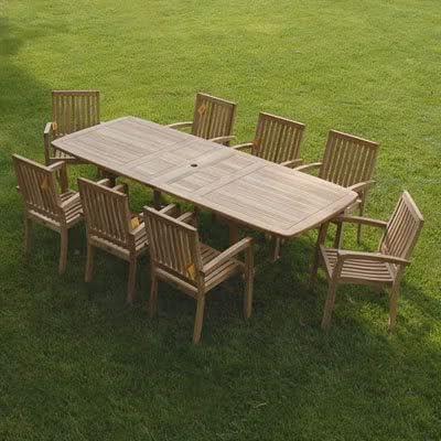 With a stunning design, this outdoor dining set features an oval dining table that extends from 82″ to an impressive 117″, accommodating larger gatherings seamlessly. Constructed from solid Grade-A teak wood, known for its durability and natural weather resistance, this set promises both style and longevity. The armless stacking chairs are not only comfortable but also practical for storage, allowing for easy organization when not in use. Additional features include a 2″ umbrella hole in the center of the table, complete with a plug for when an umbrella isn’t in use, ensuring versatility in different weather conditions.