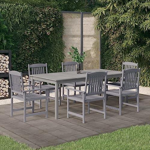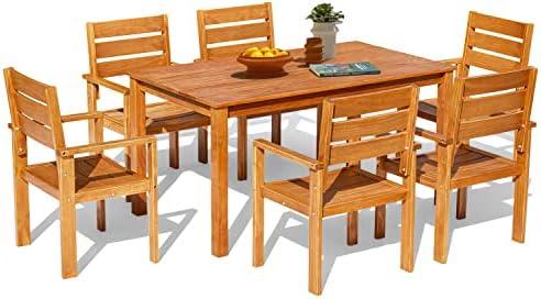 The set includes six ergonomic wooden chairs featuring well-designed backrests and armrests that provide ultimate comfort, making each dining experience pleasant even during extended meals. Assembly is made easy with clear instructions and intuitively labeled parts, ensuring you can set it up without any hassle. Among the advantages are its sturdy construction and versatility across multiple settings, while the drawbacks may include the need for occasional maintenance to preserve the wood’s integrity. it represents a blend of functionality and style for outdoor living.