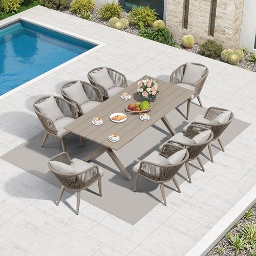Stylish Outdoor Dining Set for 8 with Swivel Chairs and Washable Cushions