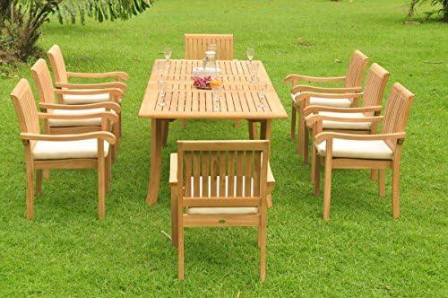 Amazonia Arizona 9 Piece Oval Patio Dining Set | Eucalyptus Wood | Ideal for Outdoors and Indoors