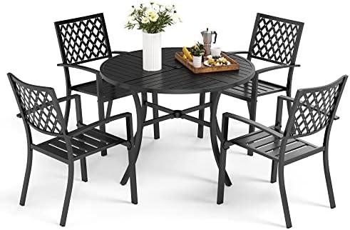 Chic 5-Piece Outdoor Dining Set with Umbrella Hole and Stacking Chairs