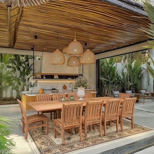 This exquisite outdoor dining ensemble is crafted from sustainably sourced A-grade teak wood, ensuring not only stunning aesthetics but also environmental responsibility. Meticulously handmade by skilled artisans, each piece showcases impeccable craftsmanship and a timeless design. The rectangular double extension table features two butterfly leaf extensions, offering versatile seating capacity for gatherings of various sizes. With dimensions adjustable from 78″ to 118″, it can comfortably accommodate both intimate dinners and larger parties, making it a versatile addition to any patio or garden.
