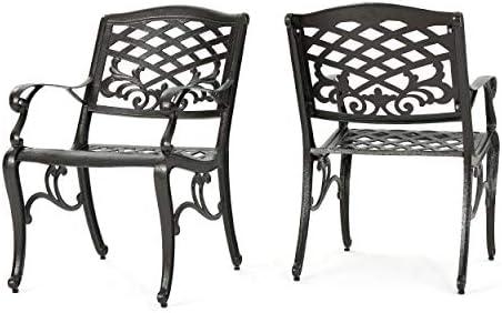 Christopher Knight Home Sarasota Outdoor Cast Aluminum Outdoor Chairs, 2-Pcs Set, Hammered Bronze
